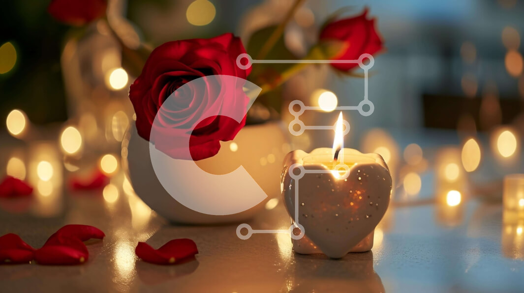 Intra Συλλεκτικό Ξύλινο Παζλ Plywood 4mm - Ρομαντικό τραπέζι με κόκκινα μπαλόνια, κεριά και καρδιές Σε Ξύλινο Κουτί - Διαστάσεις Puzzle: 10x10 cm – 25 κομμάτια