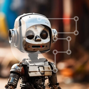 Intra Συλλεκτικό Ξύλινο Παζλ Plywood 4mm - Φουτουριστική εικόνα ενός ρομπότ με ακουστικά που στέκονται σε έναν χωματόδρομο Σε Ξύλινο Κουτί - Διαστάσεις Puzzle: 10x10 cm – 25 κομμάτια