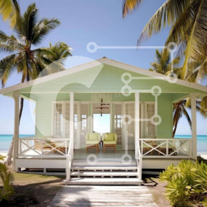 Intra Συλλεκτικό Ξύλινο Παζλ Plywood 4mm - Πράσινο σπίτι στην παραλία με τους φοίνικες Σε Ξύλινο Κουτί - Διαστάσεις: 10x10 cm – 25 κομμάτια