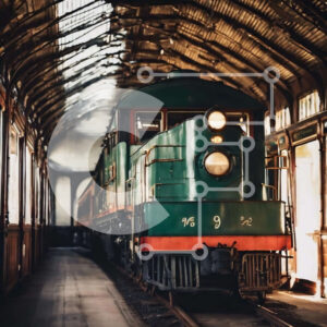 Intra Συλλεκτικό Ξύλινο Παζλ Plywood 4mm - Πράσινο τρένο στο σταθμό Σε Ξύλινο Κουτί - Διαστάσεις Puzzle: 10x10 cm – 25 κομμάτια