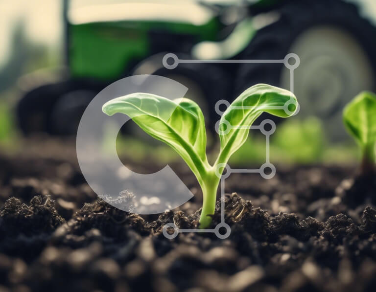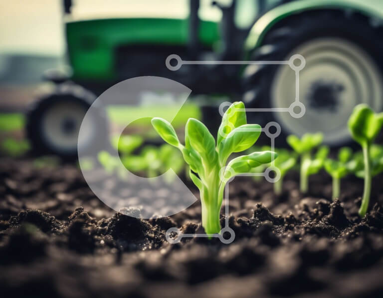 Intra Συλλεκτικό Ξύλινο Παζλ Plywood 4mm - Πράσινο τρακτέρ και νεαρά φυτά στο γεωργικό τομέα Σε Ξύλινο Κουτί - Διαστάσεις: 10x10 cm – 25 κομμάτια