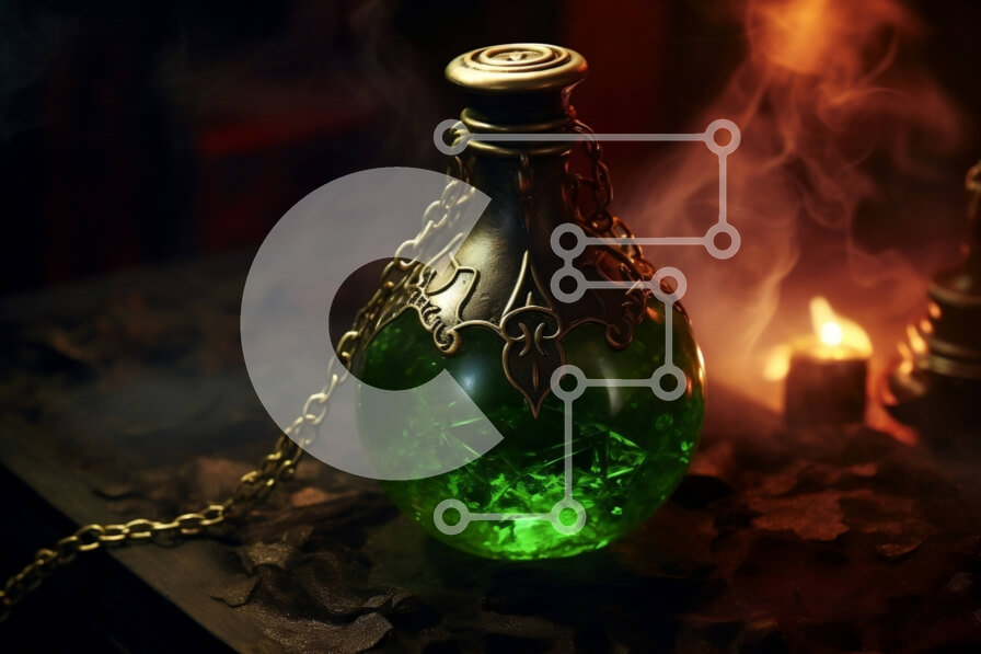 Intra Συλλεκτικό Ξύλινο Παζλ Plywood 4mm - Πράσινο υγρό μπουκάλι με την αλυσίδα ヨ Φωτογραφία Αρχείου Σε Ξύλινο Κουτί - Διαστάσεις: 10x10 cm – 25 κομμάτια