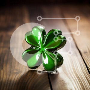 Intra Συλλεκτικό Ξύλινο Παζλ Plywood 4mm - Πράσινο τετράφυλλο τριφύλλι σε ξύλινο τραπέζι Σε Ξύλινο Κουτί - Διαστάσεις: 10x10 cm – 25 κομμάτια
