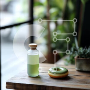 Intra Συλλεκτικό Ξύλινο Παζλ Plywood 4mm - Πράσινο υγρό και ντόνατ σε ένα ξύλινο τραπέζι Σε Ξύλινο Κουτί - Διαστάσεις: 10x10 cm – 25 κομμάτια