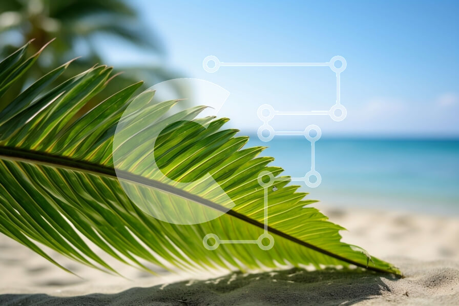 Intra Συλλεκτικό Ξύλινο Παζλ Plywood 4mm - Πράσινο Φοίνικας στην αμμώδη παραλία με καθαρό μπλε ουρανό και ωκεανό Σε Ξύλινο Κουτί - Διαστάσεις: 10x10 cm – 25 κομμάτια