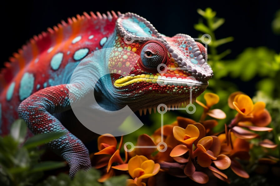 Intra Συλλεκτικό Ξύλινο Παζλ Plywood 4mm - Πολύχρωμος χαμαιλέοντας σε ένα κλαδί με φύλλα και λουλούδια Σε Ξύλινο Κουτί - Διαστάσεις: 10x10 cm – 25 κομμάτια