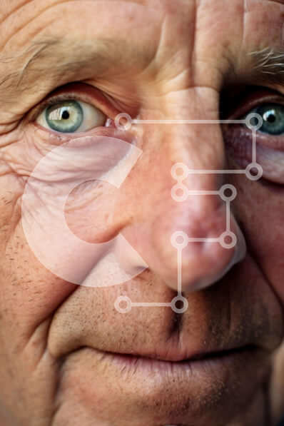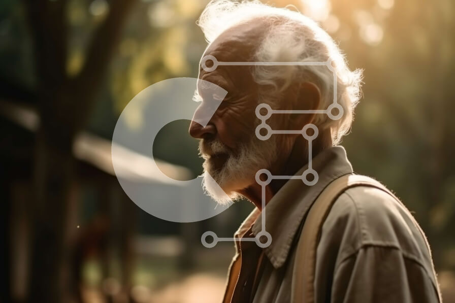 Intra Συλλεκτικό Ξύλινο Παζλ Plywood 4mm - Πορτρέτο ενός ηλικιωμένου άνδρα με ένα χαμογελαστό πρόσωπο και μπλε μάτια σε ένα λευκό πουκάμισο Σε Ξύλινο Κουτί - Διαστάσεις Puzzle: 10x10 cm – 25 κομμάτια