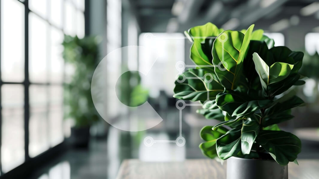 Intra Συλλεκτικό Ξύλινο Παζλ Plywood 4mm - Φυτό εσωτερικού χώρου σε γλάστρα με πράσινα φύλλα μπροστά από μεγάλα παράθυρα Σε Ξύλινο Κουτί - Διαστάσεις Puzzle: 10x10 cm – 25 κομμάτια