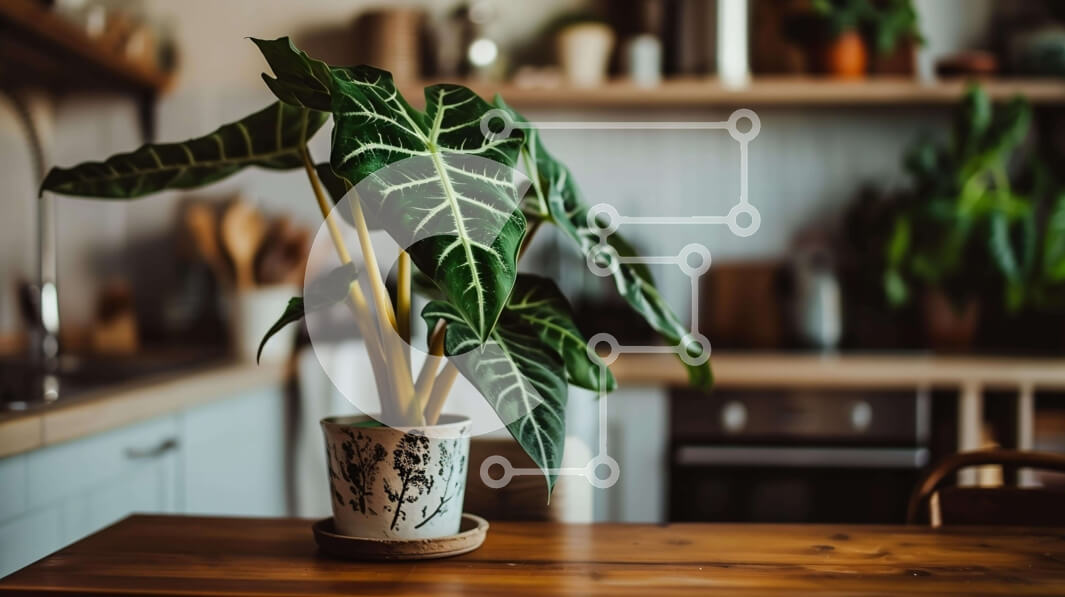 Intra Συλλεκτικό Ξύλινο Παζλ Plywood 4mm - Φυτό εσωτερικού χώρου σε γλάστρα σε ξύλινο τραπέζι στην κουζίνα Σε Ξύλινο Κουτί - Διαστάσεις Puzzle: 10x10 cm – 25 κομμάτια