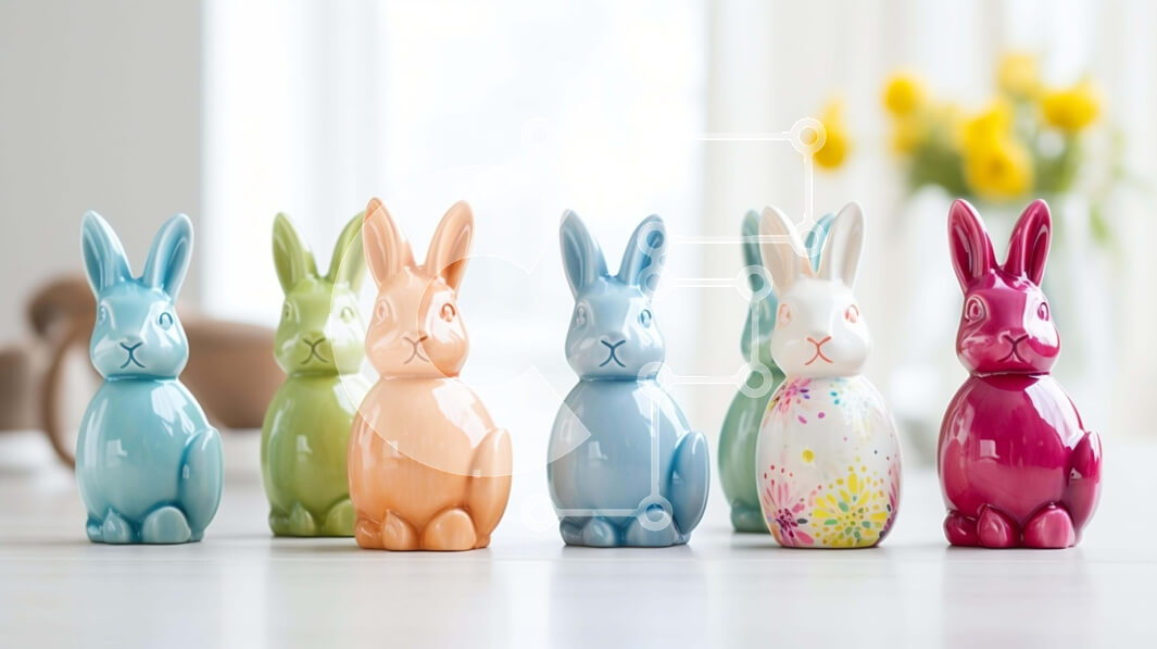 Intra Συλλεκτικό Ξύλινο Παζλ Plywood 4mm - Πολύχρωμα κεραμικά ειδώλια λαγουδάκι στο τραπέζι Σε Ξύλινο Κουτί - Διαστάσεις Puzzle: 10x10 cm – 25 κομμάτια