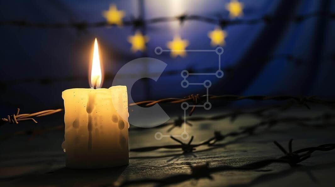 Intra Συλλεκτικό Ξύλινο Παζλ Plywood 4mm - Φως κεριών ανάμεσα σε συρματοπλέγματα που συμβολίζει την ελπίδα και την ανθεκτικότητα Σε Ξύλινο Κουτί - Διαστάσεις Puzzle: 10x10 cm – 25 κομμάτια
