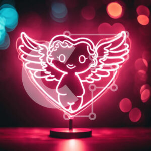 Intra Συλλεκτικό Ξύλινο Παζλ Plywood 4mm - Φως νέον σε σχήμα καρδιάς με κεφάλι αγγέλου και φτερά Σε Ξύλινο Κουτί - Διαστάσεις Puzzle: 10x10 cm – 25 κομμάτια