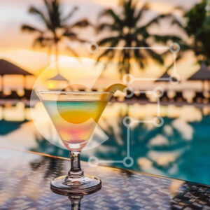 Intra Συλλεκτικό Ξύλινο Παζλ Plywood 4mm - Σκηνή κοκτέιλ ηλιοβασιλέματος σε υπαίθριο τραπέζι μπιλιάρδου με φοίνικες Σε Ξύλινο Κουτί - Διαστάσεις Puzzle: 10x10 cm – 25 κομμάτια