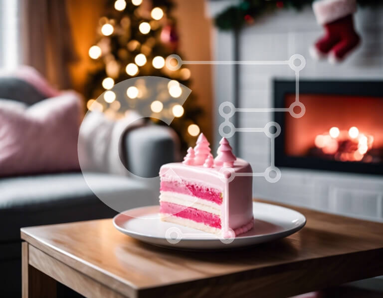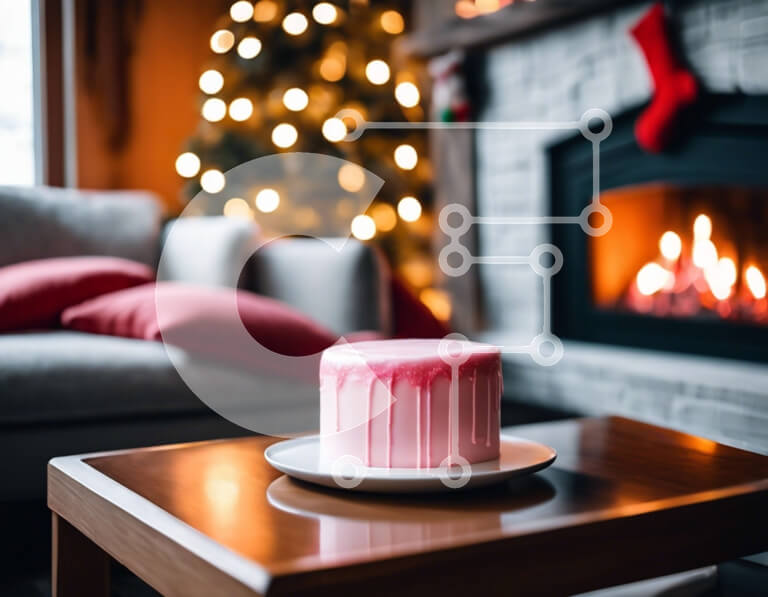 Intra Συλλεκτικό Ξύλινο Παζλ Plywood 4mm - Ροζ κέικ σε ένα τραπέζι μπροστά από ένα διακοσμητικό τζάκι Σε Ξύλινο Κουτί - Διαστάσεις Puzzle: 10x10 cm – 25 κομμάτια