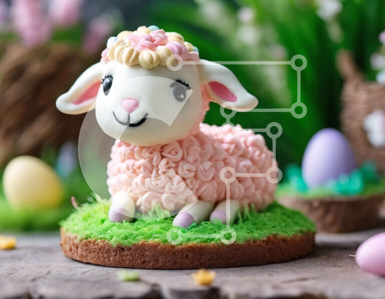 Intra Συλλεκτικό Ξύλινο Παζλ Plywood 4mm - Ροζ κέικ προβάτου πάνω από πασχαλινά αυγά Σε Ξύλινο Κουτί - Διαστάσεις: 10x10 cm – 25 κομμάτια