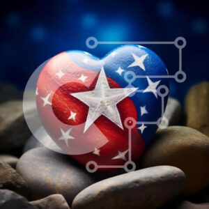 Intra Συλλεκτικό Ξύλινο Παζλ Plywood 4mm - Ροκ σε σχήμα καρδιάς αμερικανικής σημαίας σε σκούρο φόντο Σε Ξύλινο Κουτί - Διαστάσεις Puzzle: 10x10 cm – 25 κομμάτια