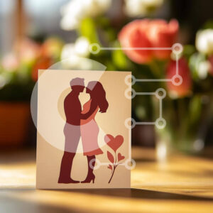 Intra Συλλεκτικό Ξύλινο Παζλ Plywood 4mm - Ρομαντική ευχετήρια κάρτα με σιλουέτα ζευγάρι και λουλούδια Σε Ξύλινο Κουτί - Διαστάσεις Puzzle: 10x10 cm – 25 κομμάτια