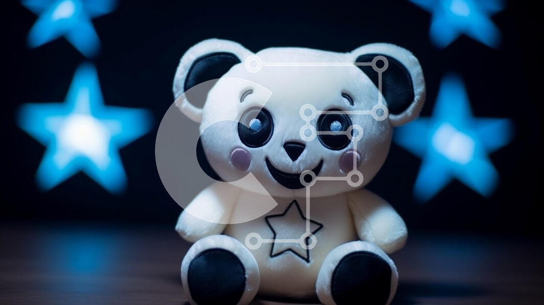 Intra Συλλεκτικό Ξύλινο Παζλ Plywood 4mm - Χαριτωμένο βελούδινο παιχνίδι Panda με φόντο μπλε αστέρια Σε Ξύλινο Κουτί - Διαστάσεις Puzzle: 10x10 cm – 25 κομμάτια