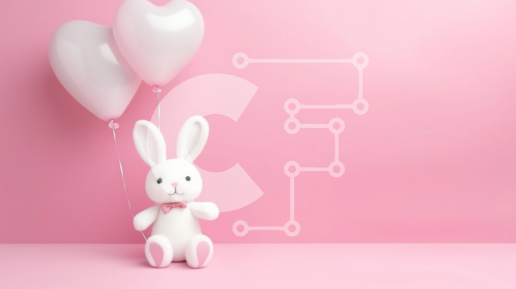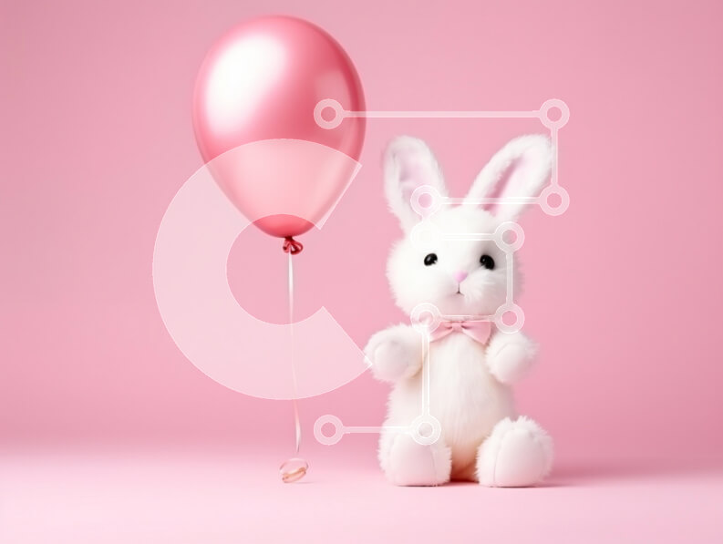 Intra Συλλεκτικό Ξύλινο Παζλ Plywood 4mm - Χαριτωμένο βελούδινο κουνέλι με μπαλόνια καρδιά σε ροζ φόντο Σε Ξύλινο Κουτί - Διαστάσεις Puzzle: 10x10 cm – 25 κομμάτια