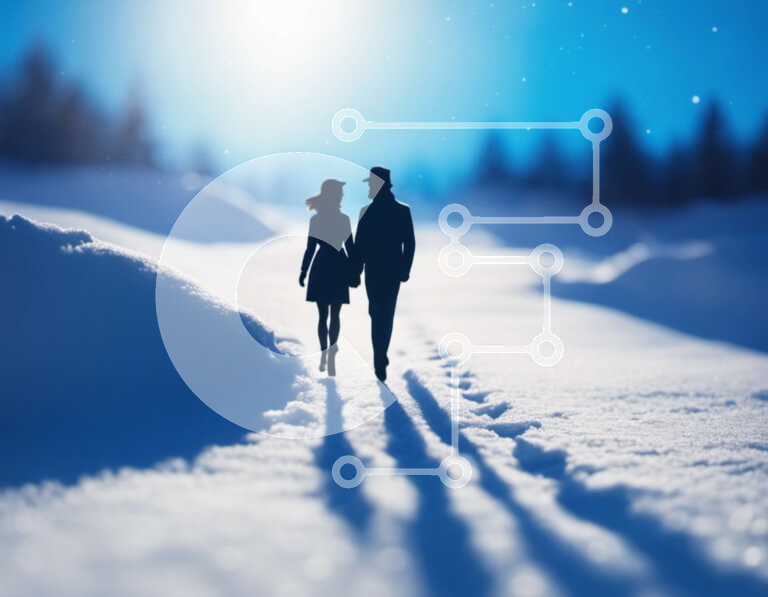 Intra Συλλεκτικό Ξύλινο Παζλ Plywood 4mm - Ρομαντικό ζευγάρι που περπατά στο χιονισμένο τοπίο Σε Ξύλινο Κουτί - Διαστάσεις Puzzle: 10x10 cm – 25 κομμάτια