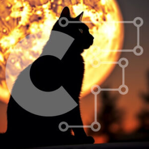 Intra Συλλεκτικό Ξύλινο Παζλ Plywood 4mm - Σαγηνευτική εικόνα της Μαύρης Γάτας και της Πανσέληνου Σε Ξύλινο Κουτί - Διαστάσεις: 10x10 cm – 25 κομμάτια