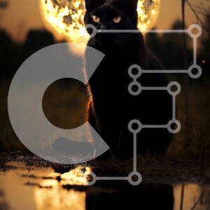 Intra Συλλεκτικό Ξύλινο Παζλ Plywood 4mm - Σαγηνευτική εικόνα της μαύρης γάτας και της πανσέληνου το σούρουπο Σε Ξύλινο Κουτί - Διαστάσεις: 10x10 cm – 25 κομμάτια