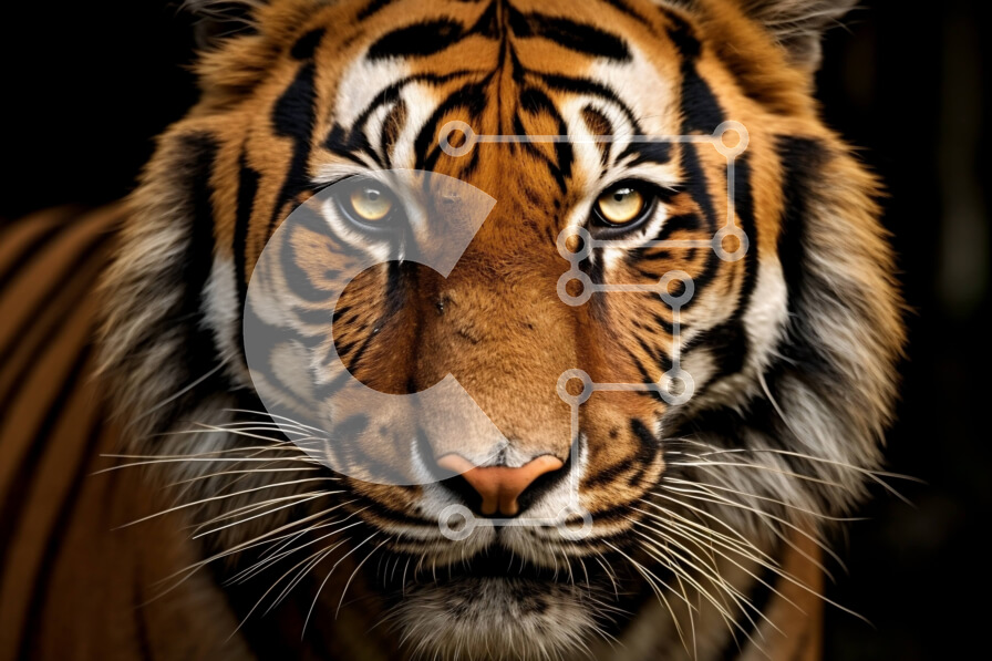 Intra Συλλεκτικό Ξύλινο Παζλ Plywood 4mm - Σαγηνευτική κοντινή πλάνο του προσώπου της τίγρης με άγρια έκφραση Σε Ξύλινο Κουτί - Διαστάσεις: 10x10 cm – 25 κομμάτια