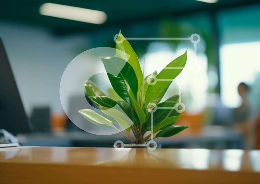 Intra Συλλεκτικό Ξύλινο Παζλ Plywood 4mm - Σκηνή γραφείου με μικρό φυτό σε γλάστρα και δύο άτομα Σε Ξύλινο Κουτί - Διαστάσεις: 10x10 cm – 25 κομμάτια