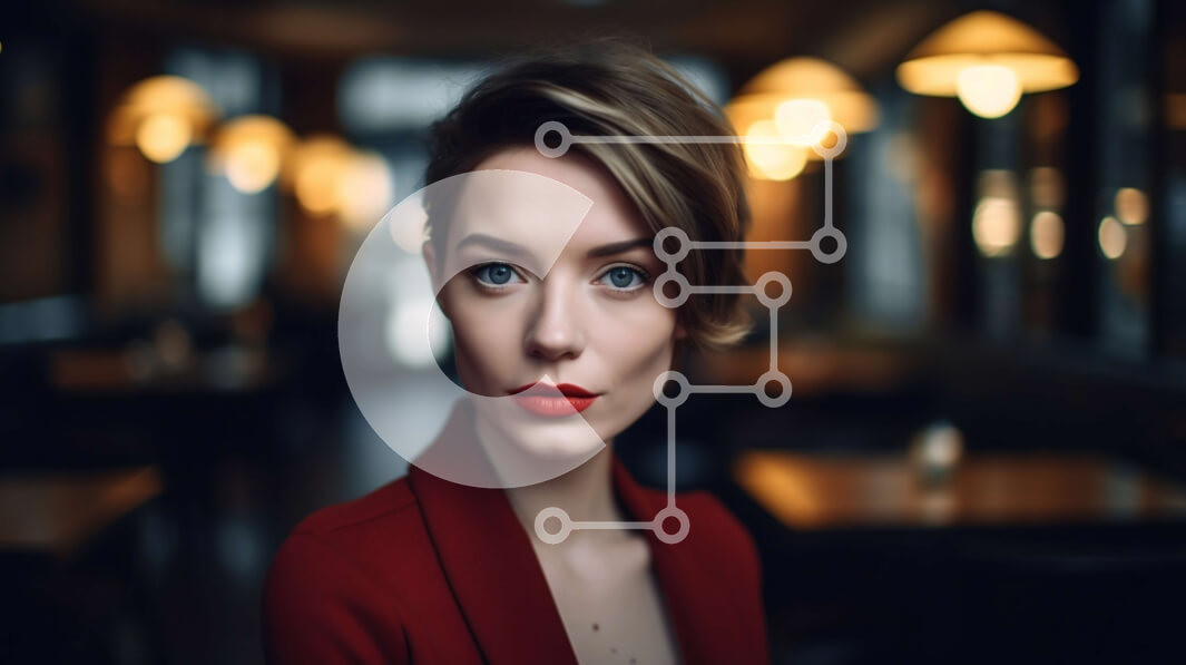 Intra Συλλεκτικό Ξύλινο Παζλ Plywood 4mm - Σοβαρή γυναίκα με κόκκινο σακάκι που κοιτάζει την κάμερα σε αμυδρά φωτισμένο δωμάτιο Σε Ξύλινο Κουτί - Διαστάσεις Puzzle: 10x10 cm – 25 κομμάτια
