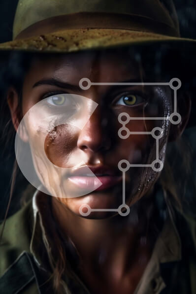 Intra Συλλεκτικό Ξύλινο Παζλ Plywood 4mm - Σοβαρή γυναίκα με ρούχα καμουφλάζ με σταγονίδια νερού στο πρόσωπό της Σε Ξύλινο Κουτί - Διαστάσεις Puzzle: 10x10 cm – 25 κομμάτια