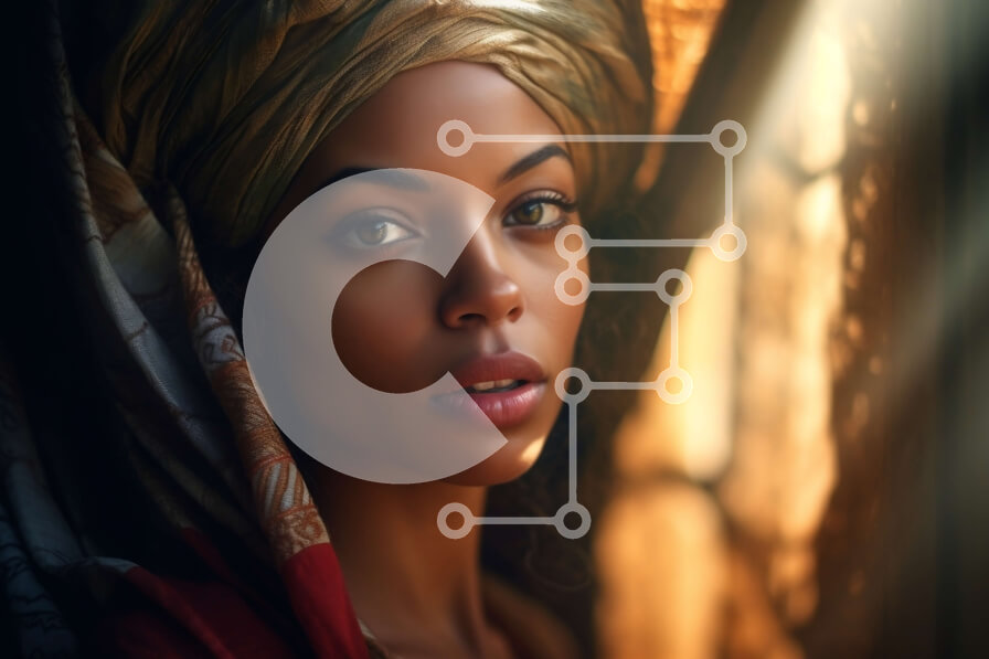 Intra Συλλεκτικό Ξύλινο Παζλ Plywood 4mm - Σοβαρή γυναίκα με σγουρά μαλλιά και μαντίλα - Φωτογραφία Αρχείου Σε Ξύλινο Κουτί - Διαστάσεις Puzzle: 10x10 cm – 25 κομμάτια