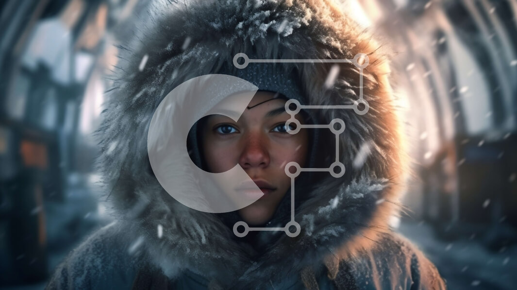 Intra Συλλεκτικό Ξύλινο Παζλ Plywood 4mm - Σοβαρή γυναίκα με χειμερινό μπουφάν με κουκούλα στέκεται στο χιόνι Σε Ξύλινο Κουτί - Διαστάσεις Puzzle: 10x10 cm – 25 κομμάτια