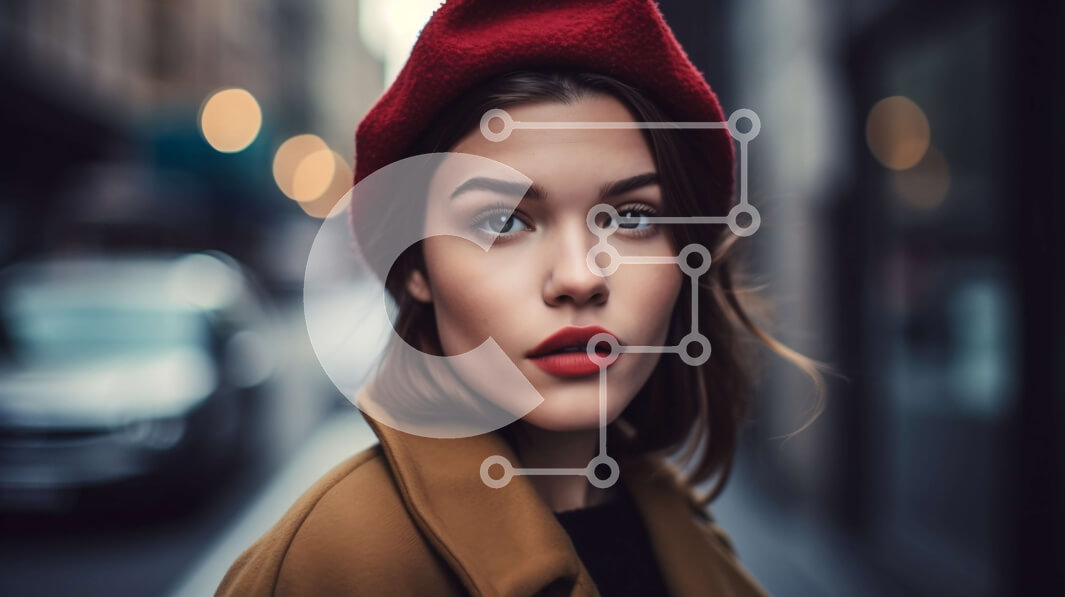 Intra Συλλεκτικό Ξύλινο Παζλ Plywood 4mm - Σοβαρή γυναίκα με σγουρά καστανά μαλλιά με κόκκινο μπερέ και καφέ παλτό στο City Street Σε Ξύλινο Κουτί - Διαστάσεις Puzzle: 10x10 cm – 25 κομμάτια