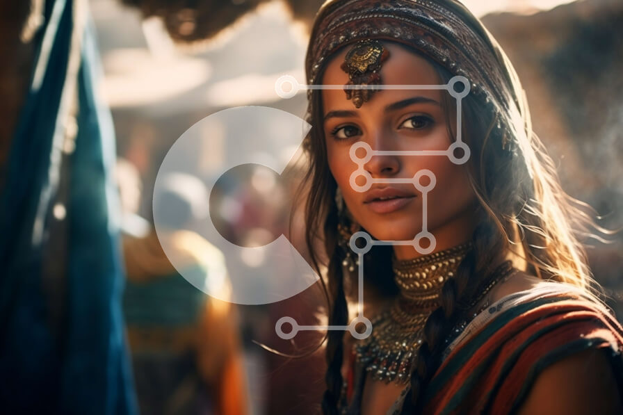 Intra Συλλεκτικό Ξύλινο Παζλ Plywood 4mm - Σοβαρή γυναίκα με χρυσό πέπλο και κοσμήματα κοιτάζοντας την κάμερα Σε Ξύλινο Κουτί - Διαστάσεις: 10x10 cm – 25 κομμάτια