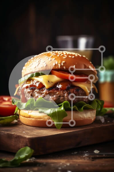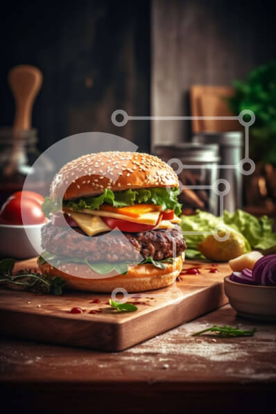 Intra Συλλεκτικό Ξύλινο Παζλ Plywood 4mm - Σπαρτική εικόνα ενός Cheeseburger σε μια ξύλινη σανίδα κοπής Σε Ξύλινο Κουτί - Διαστάσεις: 10x10 cm – 25 κομμάτια