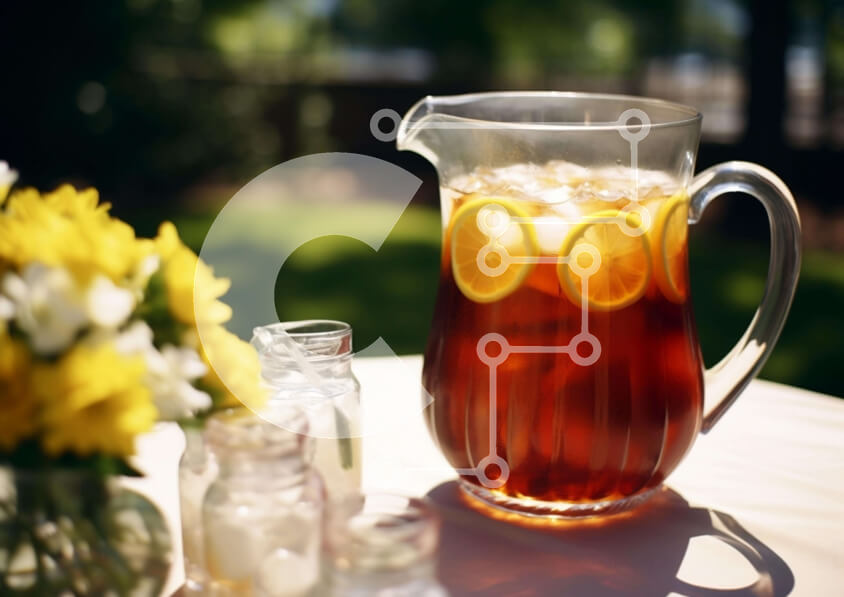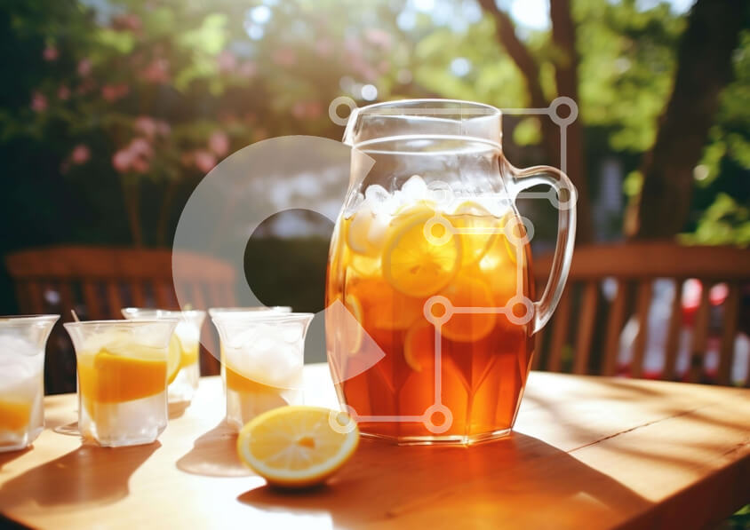 Intra Συλλεκτικό Ξύλινο Παζλ Plywood 4mm - Στάμνα παγωμένου τσαγιού με φέτες λεμονιού σε υπαίθριο τραπέζι Σε Ξύλινο Κουτί - Διαστάσεις: 10x10 cm – 25 κομμάτια