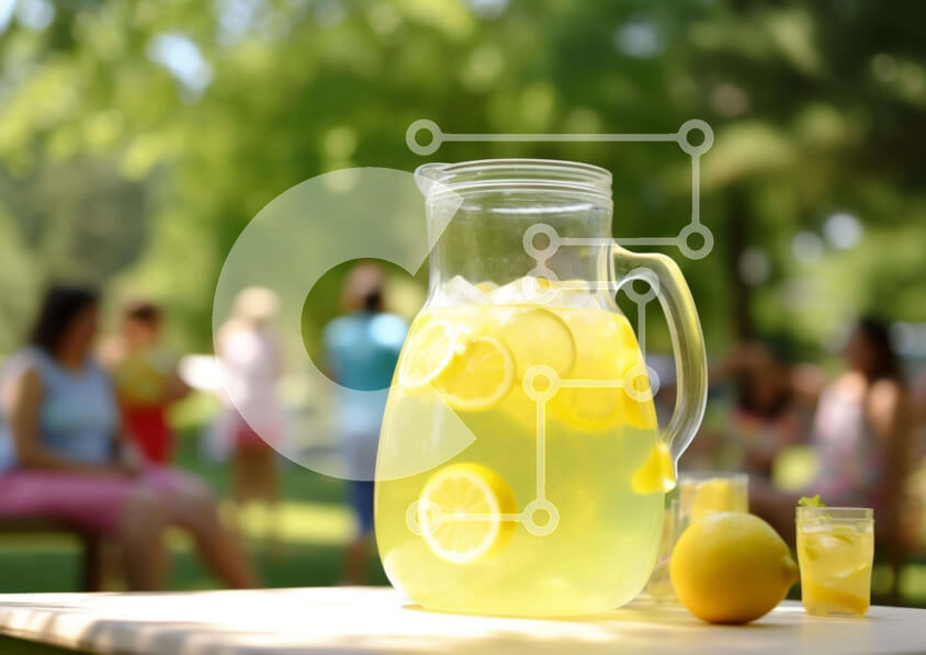 Intra Συλλεκτικό Ξύλινο Παζλ Plywood 4mm - Στάμνα με λεμονάδα σε υπαίθριο τραπέζι με ανθρώπους στο πικνίκ Σε Ξύλινο Κουτί - Διαστάσεις: 10x10 cm – 25 κομμάτια