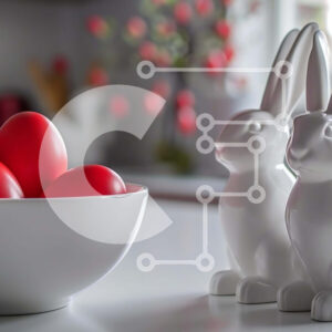 Intra Συλλεκτικό Ξύλινο Παζλ Plywood 4mm - Στολισμός Πασχαλινών Τραπεζιών με ειδώλια λευκού κουνελιού και κόκκινα αυγά Σε Ξύλινο Κουτί - Διαστάσεις Puzzle: 10x10 cm – 25 κομμάτια