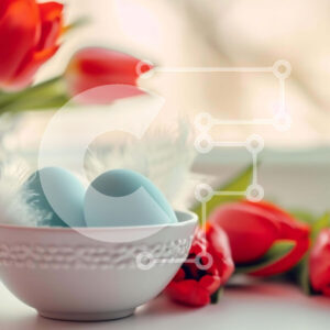 Intra Συλλεκτικό Ξύλινο Παζλ Plywood 4mm - Στολισμός τραπεζιού με θέμα το Πάσχα με μπλε αυγά και κόκκινες τουλίπες Σε Ξύλινο Κουτί - Διαστάσεις Puzzle: 10x10 cm – 25 κομμάτια