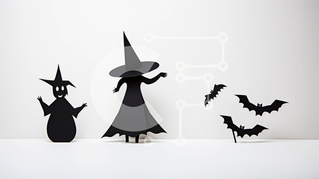 Intra Συλλεκτικό Ξύλινο Παζλ Plywood 4mm - Τρεις μαύρες χάρτινες μάγισσες και νυχτερίδες σε άσπρο φόντο Σε Ξύλινο Κουτί - Διαστάσεις Puzzle: 10x10 cm – 25 κομμάτια