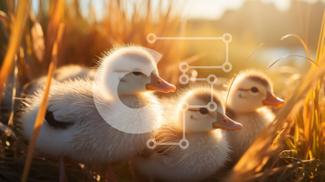 Intra Συλλεκτικό Ξύλινο Παζλ Plywood 4mm - Τρεις μωρές πάπιες σε ένα χωράφι με ψηλό γρασίδι στο ηλιοβασίλεμα Σε Ξύλινο Κουτί - Διαστάσεις: 10x10 cm – 25 κομμάτια