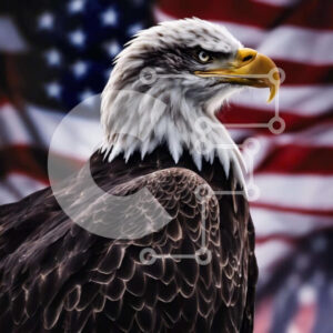 Intra Συλλεκτικό Ξύλινο Παζλ Plywood 4mm - Φαλακρός αετός με φόντο αμερικανική σημαία Σε Ξύλινο Κουτί - Διαστάσεις: 10x10 cm – 25 κομμάτια