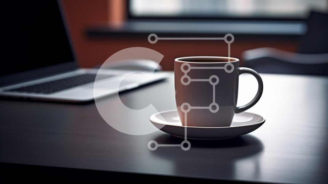 Intra Συλλεκτικό Ξύλινο Παζλ Plywood 4mm - Φλιτζάνι καφέ στο τραπέζι με φορητό υπολογιστή Σε Ξύλινο Κουτί - Διαστάσεις Puzzle: 10x10 cm – 25 κομμάτια