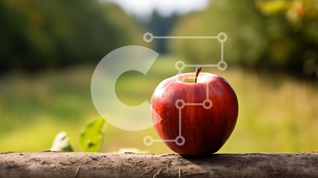 Intra Συλλεκτικό Ξύλινο Παζλ Plywood 4mm - Φρέσκο μήλο σε ένα ξύλινο κούτσουρο σε μια ρύθμιση του δάσους Σε Ξύλινο Κουτί - Διαστάσεις: 10x10 cm – 25 κομμάτια