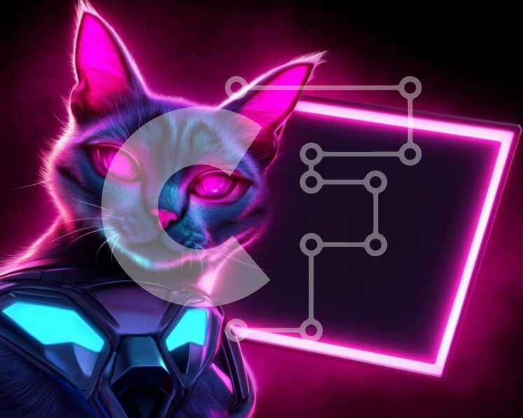 Intra Συλλεκτικό Ξύλινο Παζλ Plywood 4mm - Φουτουριστική γάτα σε περιβάλλον νέον Σε Ξύλινο Κουτί - Διαστάσεις: 10x10 cm – 25 κομμάτια