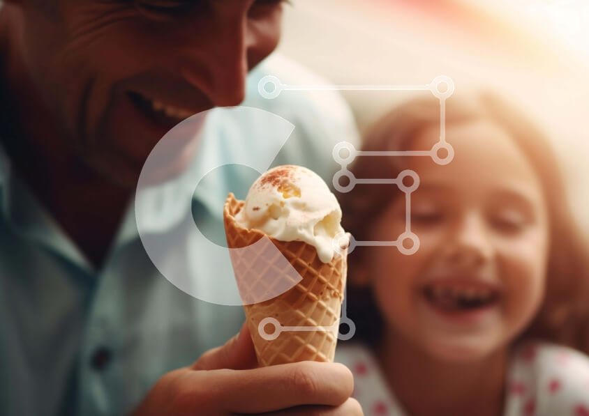 Intra Συλλεκτικό Ξύλινο Παζλ Plywood 4mm - Χαμογελαστός άνδρας με χωνάκι παγωτού και κοριτσάκι Σε Ξύλινο Κουτί - Διαστάσεις Puzzle: 10x10 cm – 25 κομμάτια