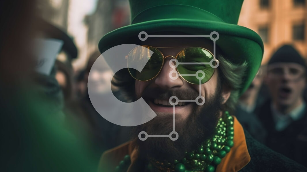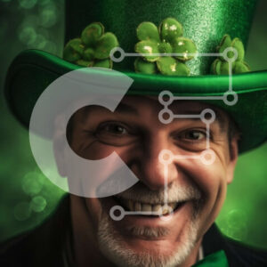 Intra Συλλεκτικό Ξύλινο Παζλ Plywood 4mm - Χαμογελαστός άνδρας με πράσινο καπέλο και παπιγιόν με τριφύλλια Σε Ξύλινο Κουτί - Διαστάσεις Puzzle: 10x10 cm – 25 κομμάτια