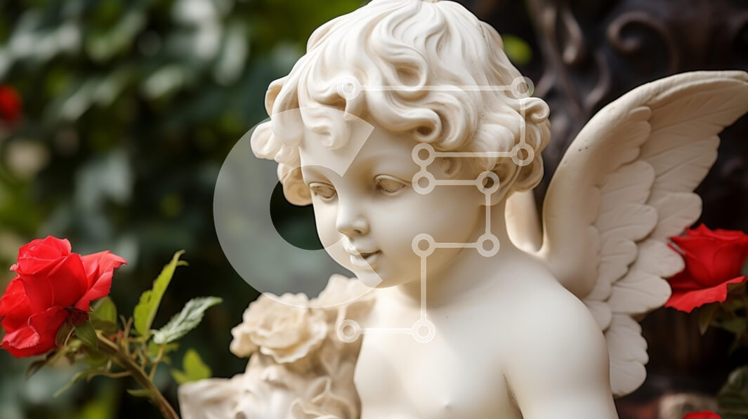 Intra Συλλεκτικό Ξύλινο Παζλ Plywood 4mm - Χερουβείμ Γλυπτό Ανάμεσα σε Τριαντάφυλλα Σε Ξύλινο Κουτί - Διαστάσεις Puzzle: 10x10 cm – 25 κομμάτια