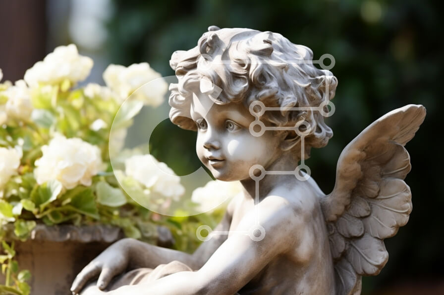 Intra Συλλεκτικό Ξύλινο Παζλ Plywood 4mm - Χερουβικό άγαλμα αγγέλου με λουλούδια Σε Ξύλινο Κουτί - Διαστάσεις Puzzle: 10x10 cm – 25 κομμάτια
