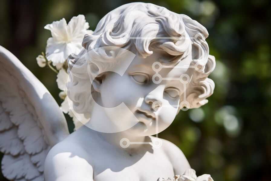 Intra Συλλεκτικό Ξύλινο Παζλ Plywood 4mm - Χερουβικό άγαλμα αγγέλου σε γαλήνιο περιβάλλον Σε Ξύλινο Κουτί - Διαστάσεις Puzzle: 10x10 cm – 25 κομμάτια